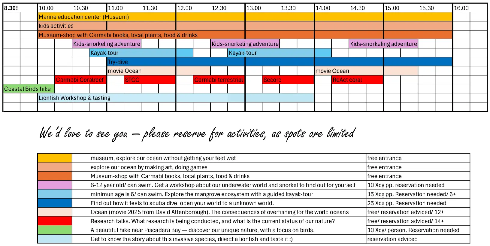 Carmabi is celebrating this special day at the Marine Education Center Piscadera on Sunday, June 7, with a variety of fun and educational activities for both young and old. From interactive workshops to exploration tours—there’s something for everyone to enjoy!